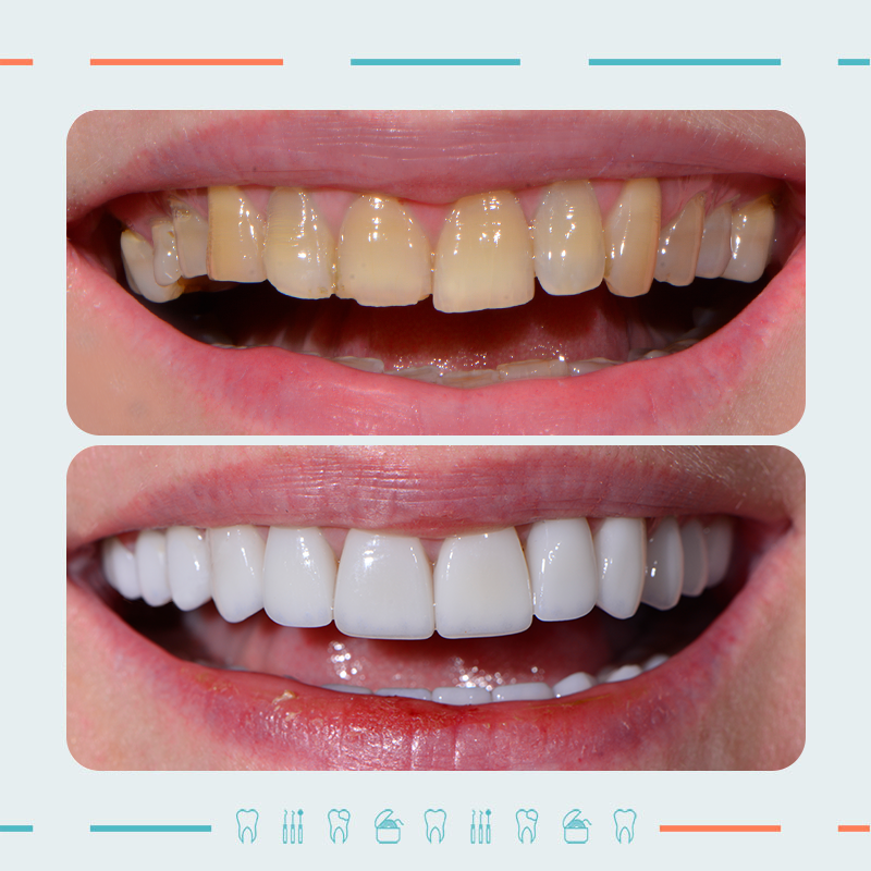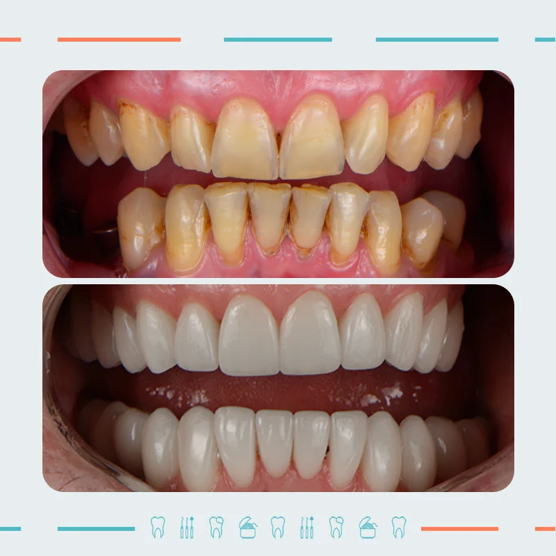 Total rehabilitation of the oral cavity with zirconia crowns.